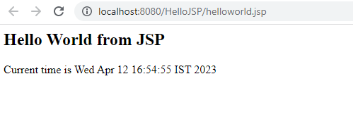 We have added an H2 heading. The Java code in a JSP file is written between <%= and %>. In the above code, I have added the Java code to print the current date and time.
