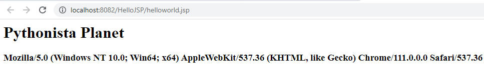 <h3> <%= request.getHeader("User-Agent") %> </h3>