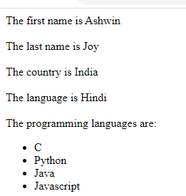 When the form is submitted, the browser displays the following page that shows all the data submitted by the user.