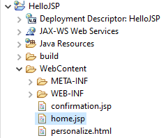 Right-click on WebContent folder and create a new file called helloworld.jsp.