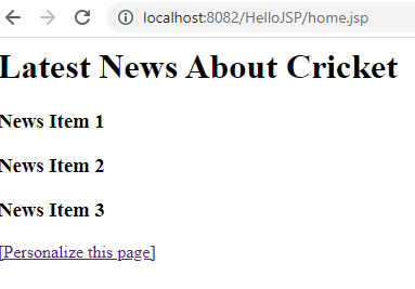 Now, let’s build a small web application that gives personalized content to the user by using cookies. This web app will have a home page (home.jsp) that suggests news about the user’s favorite sport.