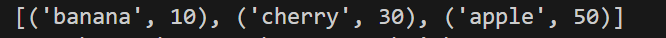 my_list = [("apple", 50), ("banana", 10), ("cherry", 30)]